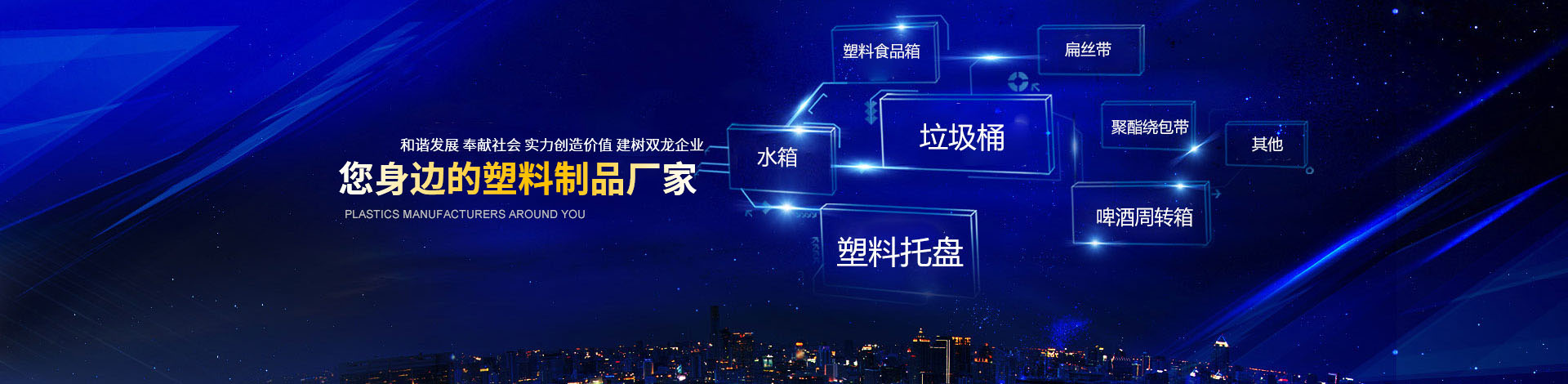 臨沂市雙龍塑料有限公司是專業塑料托盤生產廠家。公司創(chuàng)建于二零零七年,座落于中國著名的商品批發(fā)城—山東臨沂市,具備便利的物流交通環(huán)境。本公司主要產品:塑料托盤、垃圾桶,水箱; 塑料生活系列產品:塑料桌椅、塑料水桶、塑料方凳等、品種達數百余個;塑料包裝系列產品,啤酒周轉箱,塑料食品箱、扁絲帶、聚酯繞包帶等; 歡迎廣大國內外客商前來洽談,合作投資!..